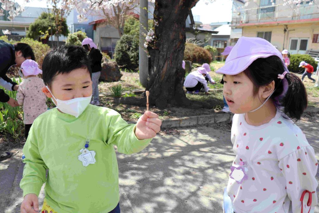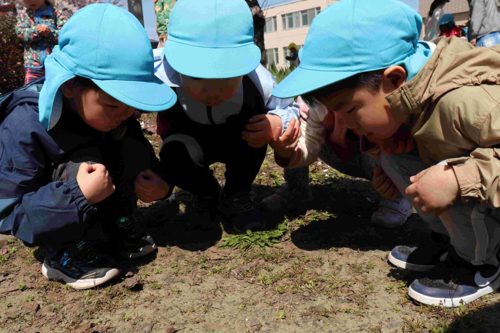 地面をじっと見つめて虫を探したり、つくしを見つけて教えてくれる子もいました。それぞれが思い思いに春を感じながら、自然とのふれあいを楽しむ姿が見られました。