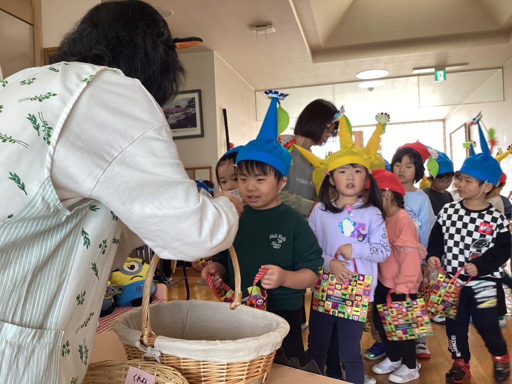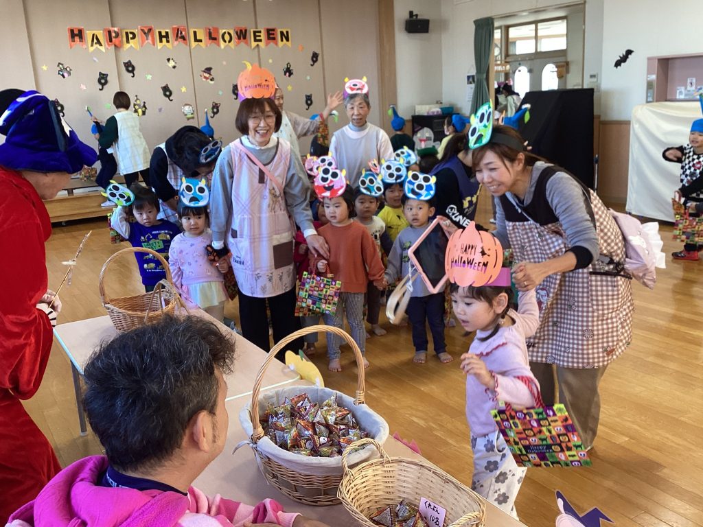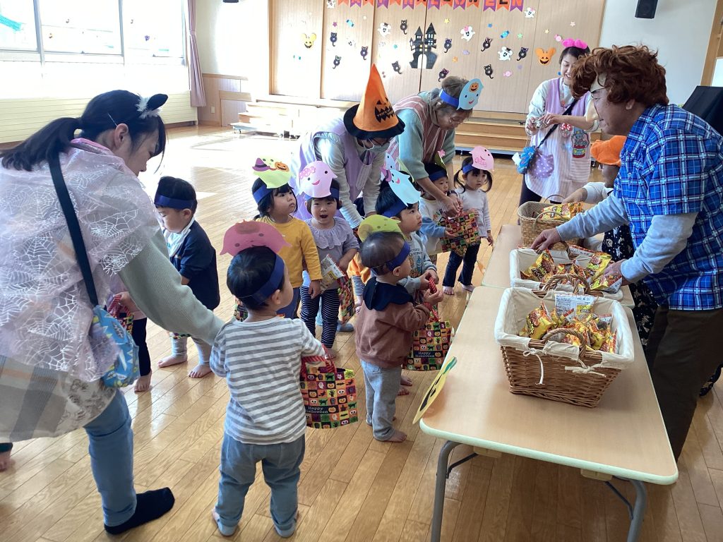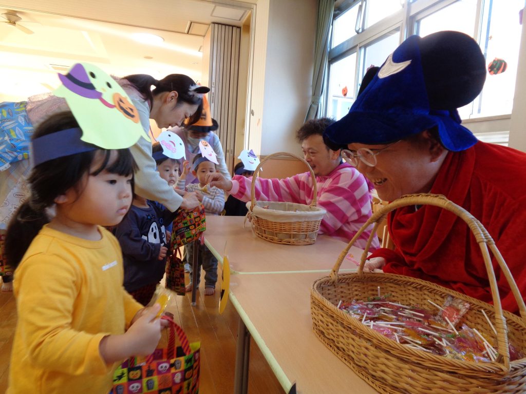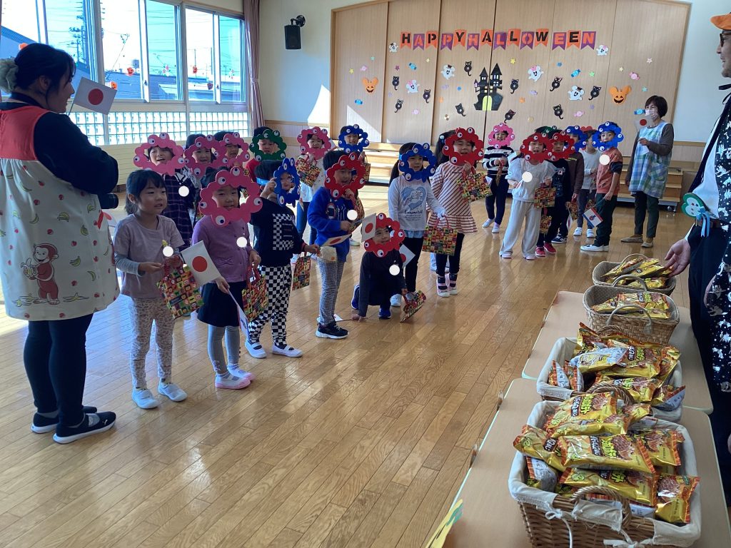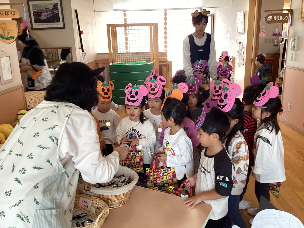 変装した子どもたちは、さっそく先生からお菓子をもらいます🍭