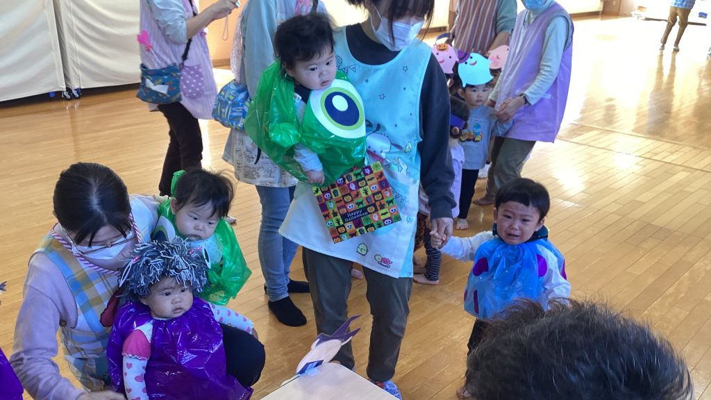 まずはお部屋で変装をしてから、園内をまわり先生からお菓子をもらいます。