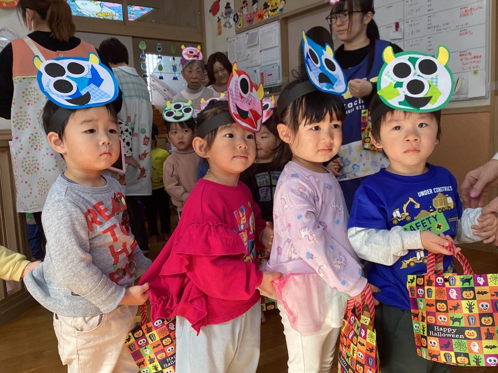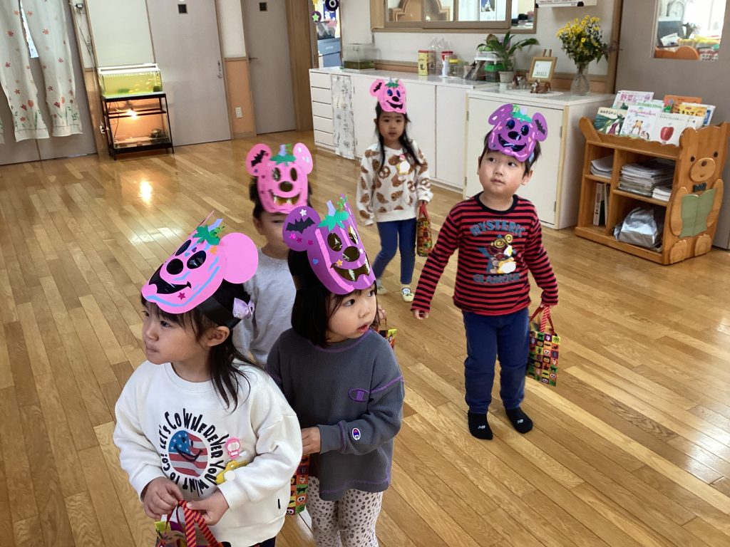 つぼみ組は、それぞれ味のあるかわいいおばけのお面をつけておばけに変身しました👻