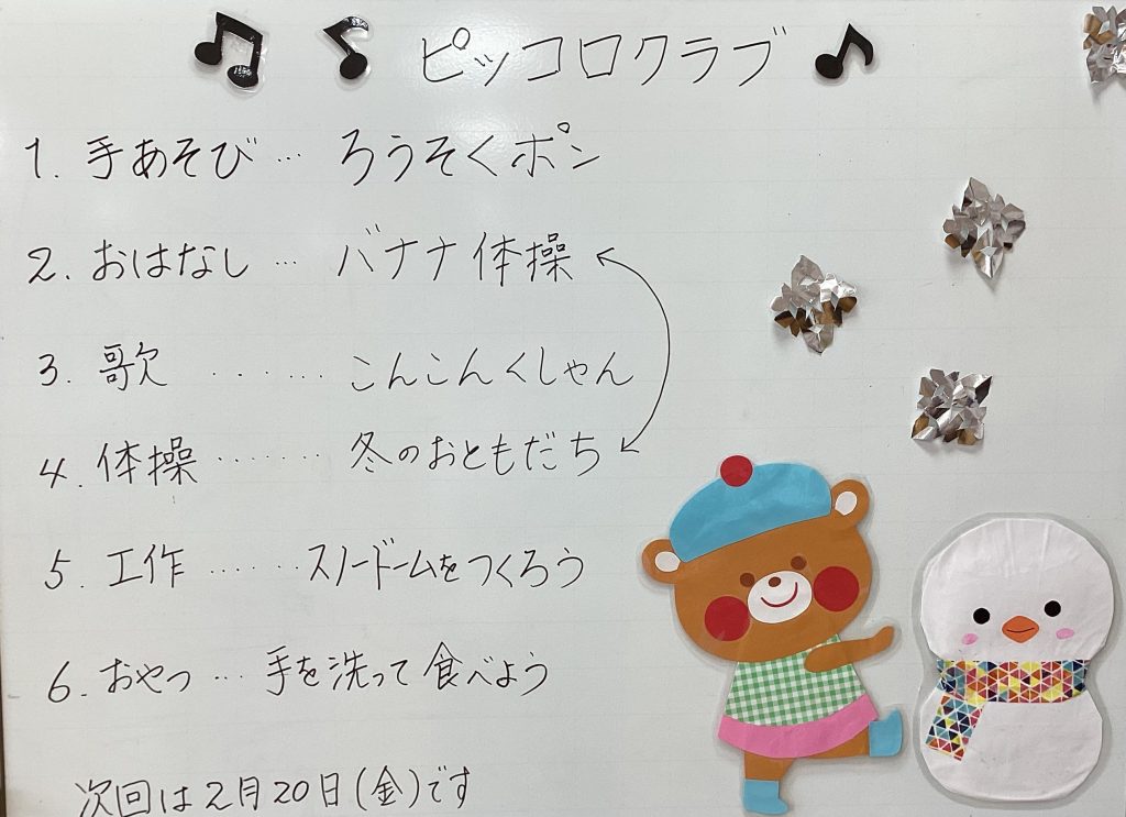 次回のピッコロクラブは2月20日(金)毛糸でかわいい動物を作ります(=^・^=)