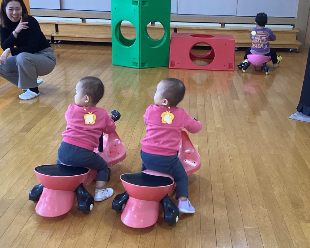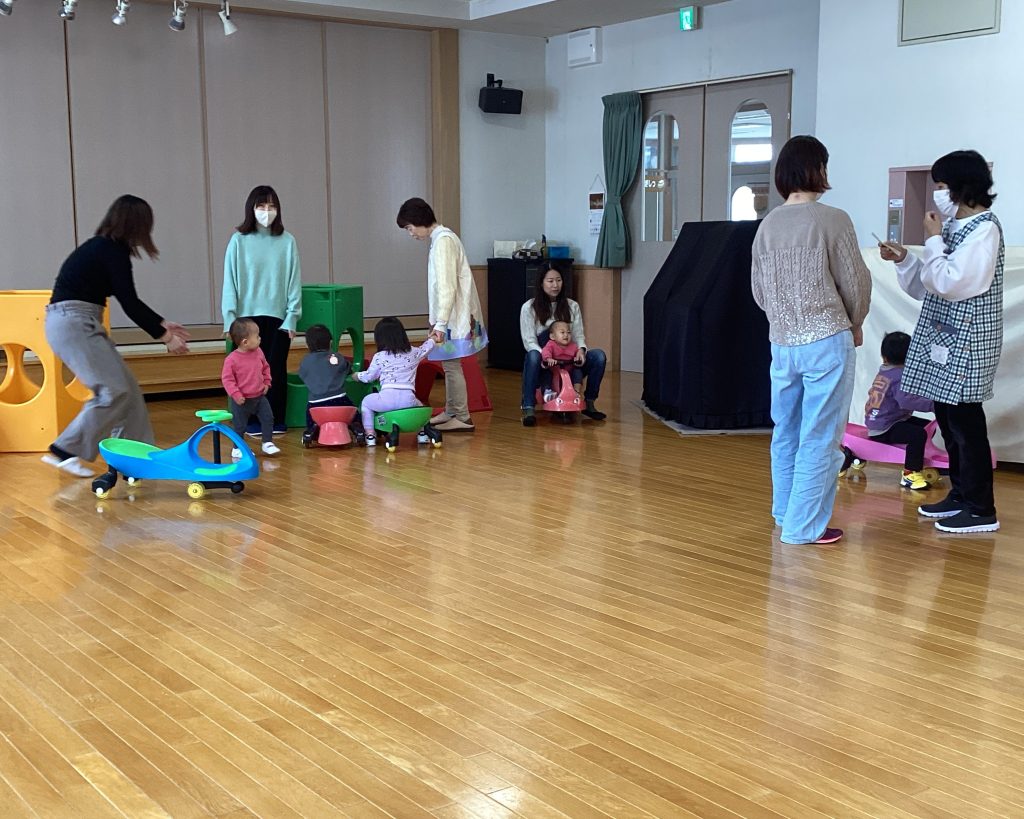 ピッコロクラブが始まるまで、玄関ホールで遊びます。