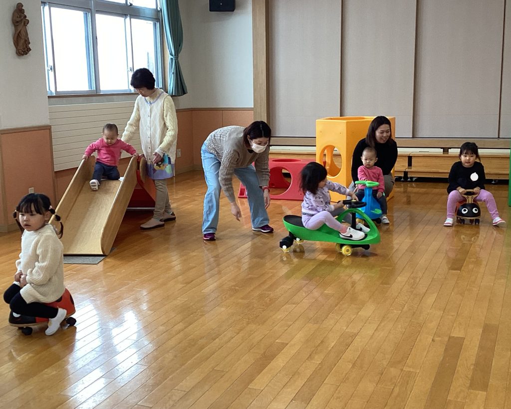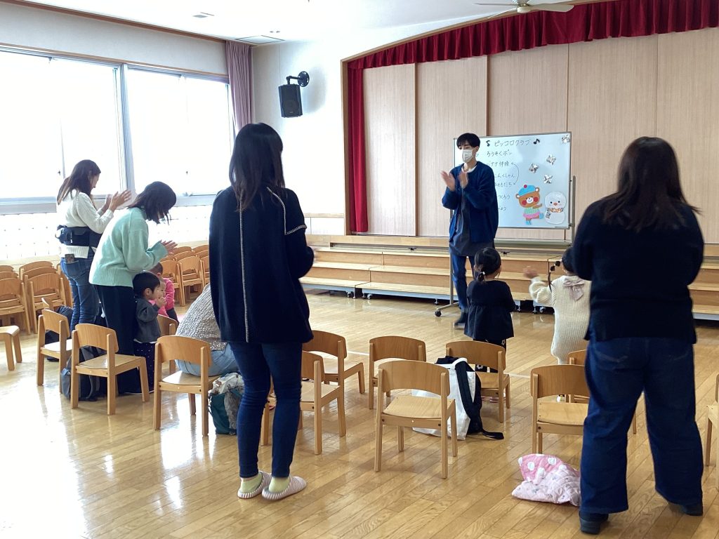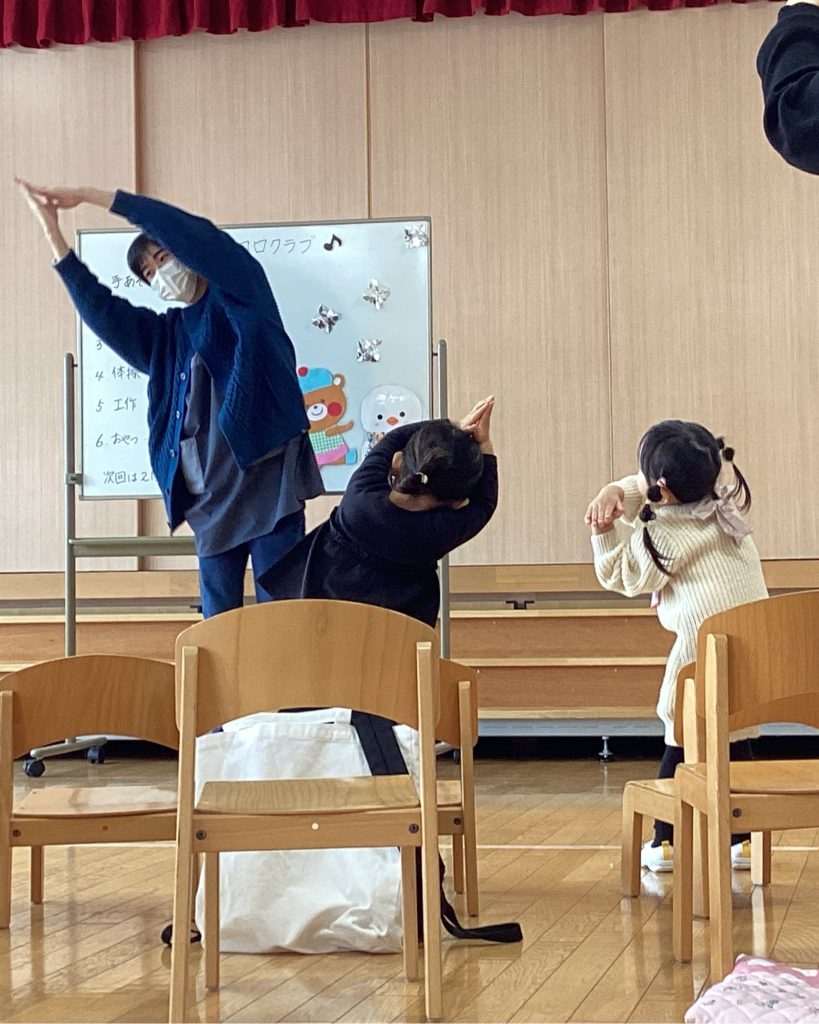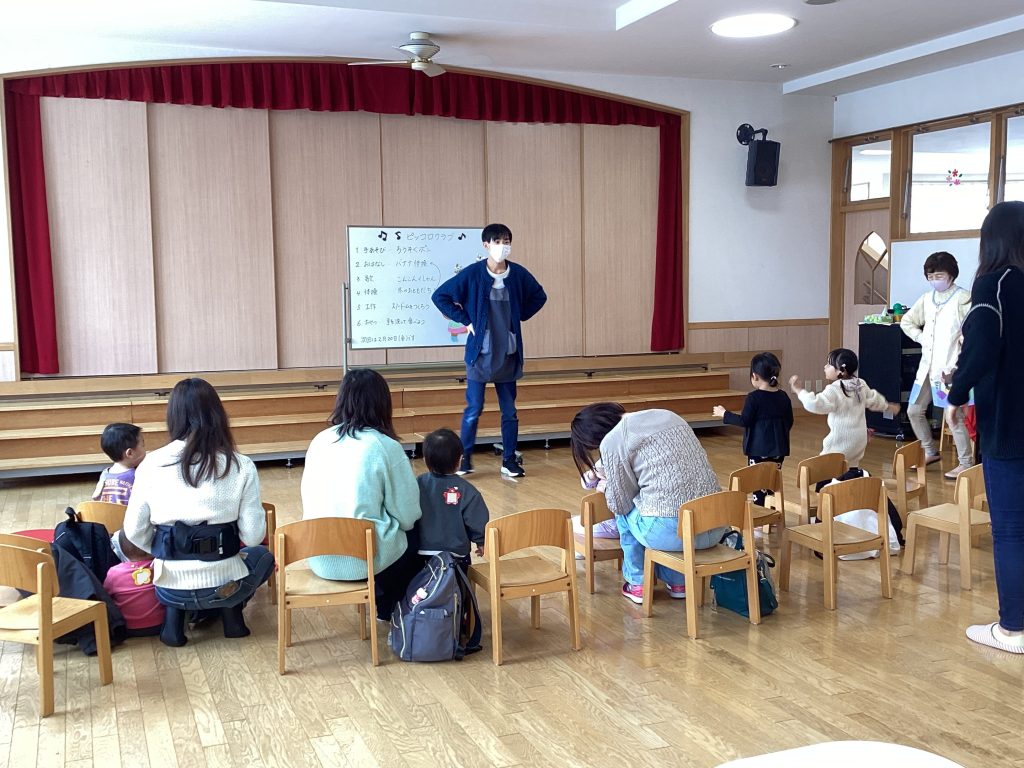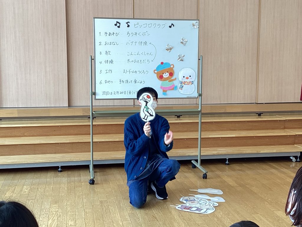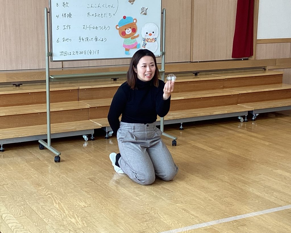まずは、先生と手遊び、おはなし(紙芝居)、歌、体操を楽しみました。