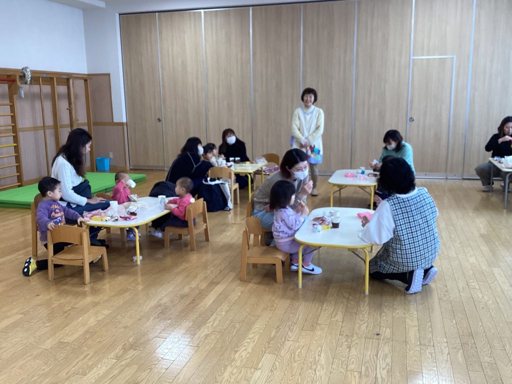 保護者の方は、おやつの時間や自由遊びの時間に保育教諭へ育児や入園の相談ができます。
