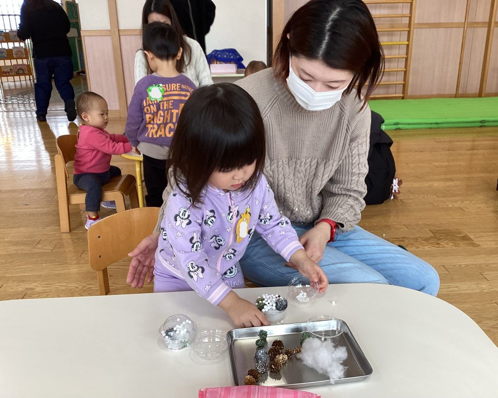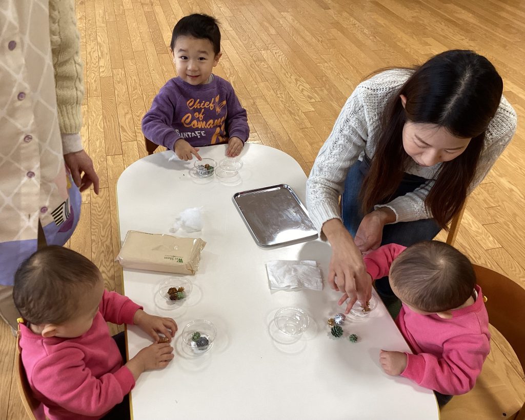 こども園の先生と一緒に歌ったり、おどったり、工作を楽しみます。