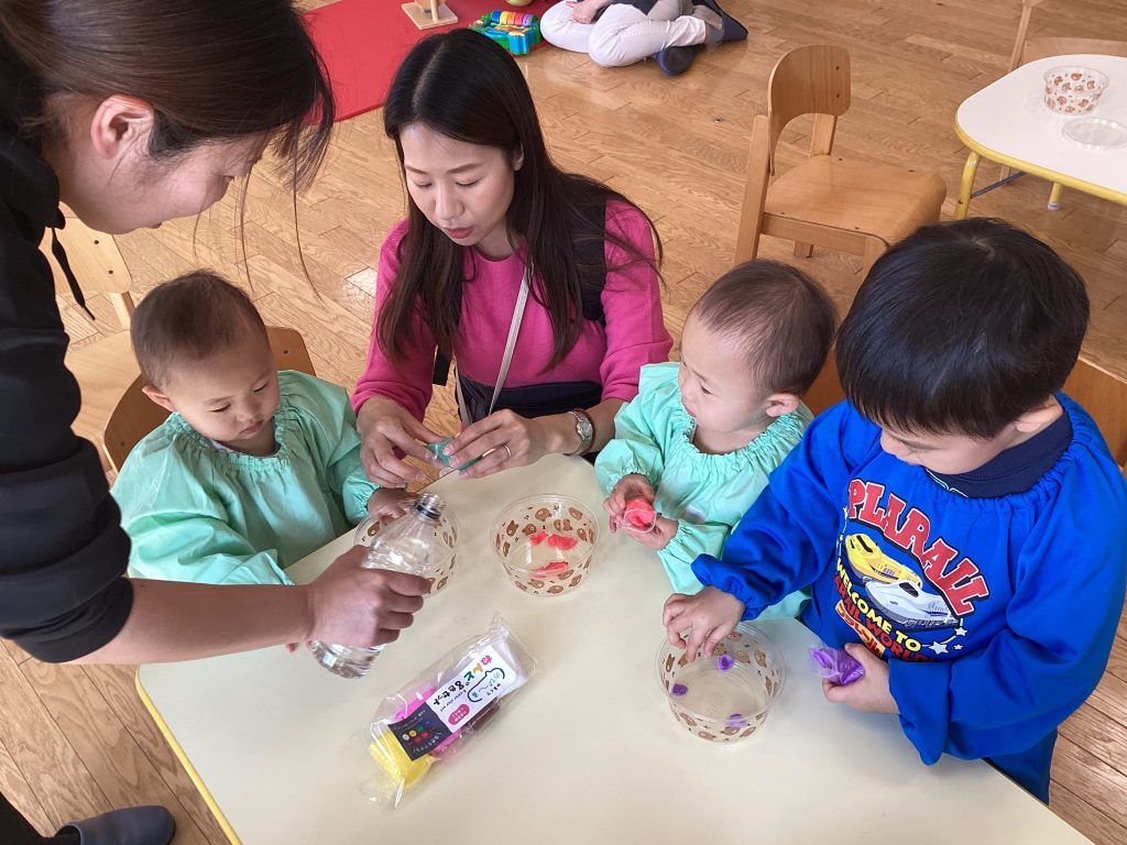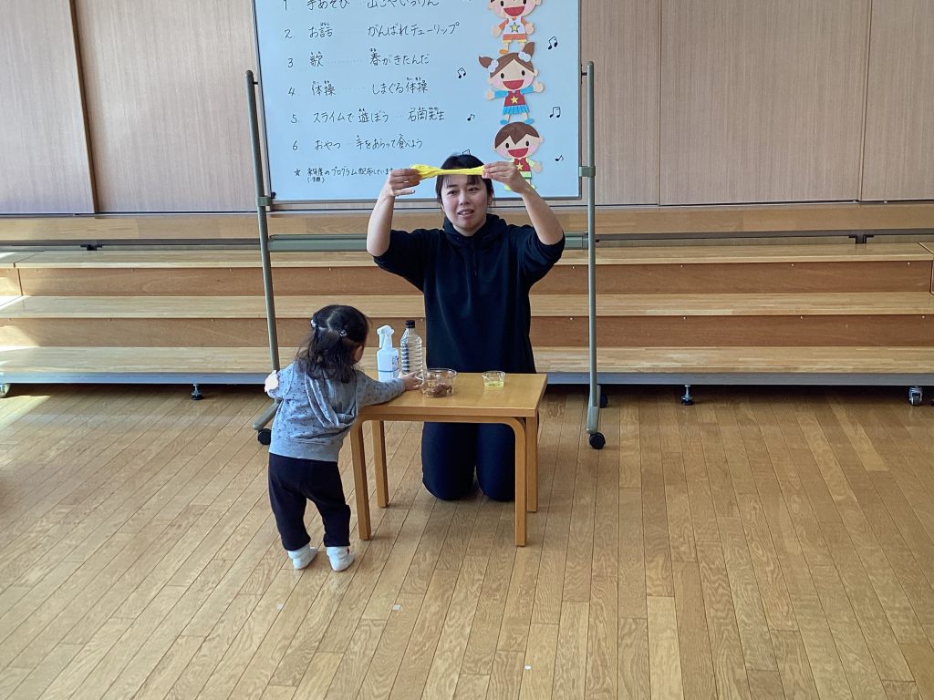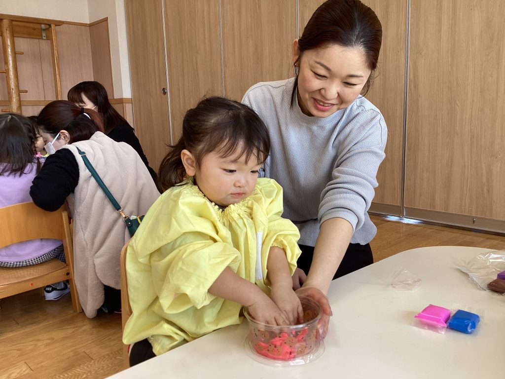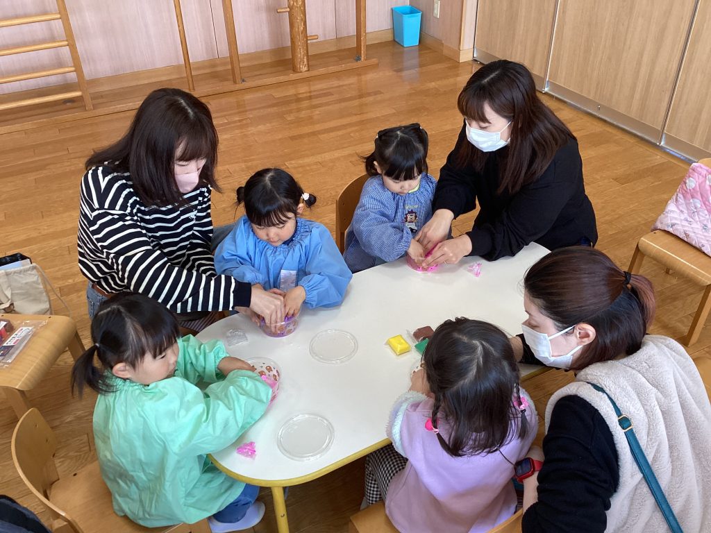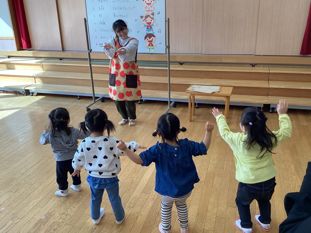 こども園の先生と一緒に歌ったり、おどったり、工作を楽しみます。