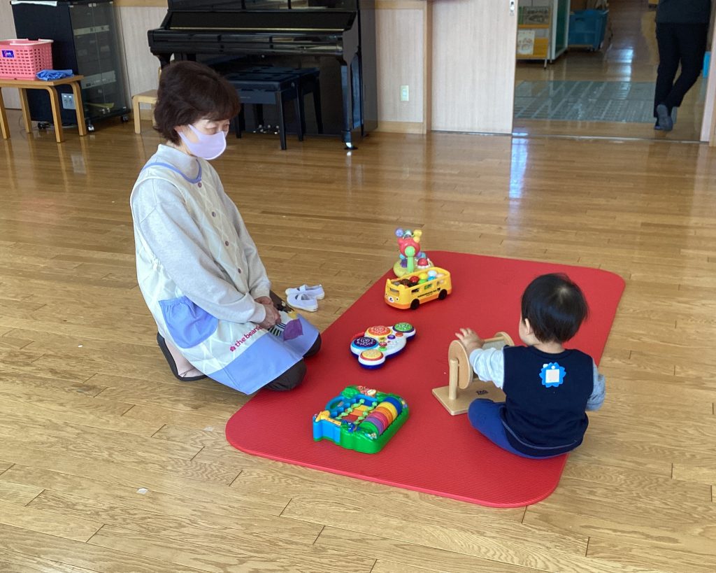 こども園の先生と手あそびをして