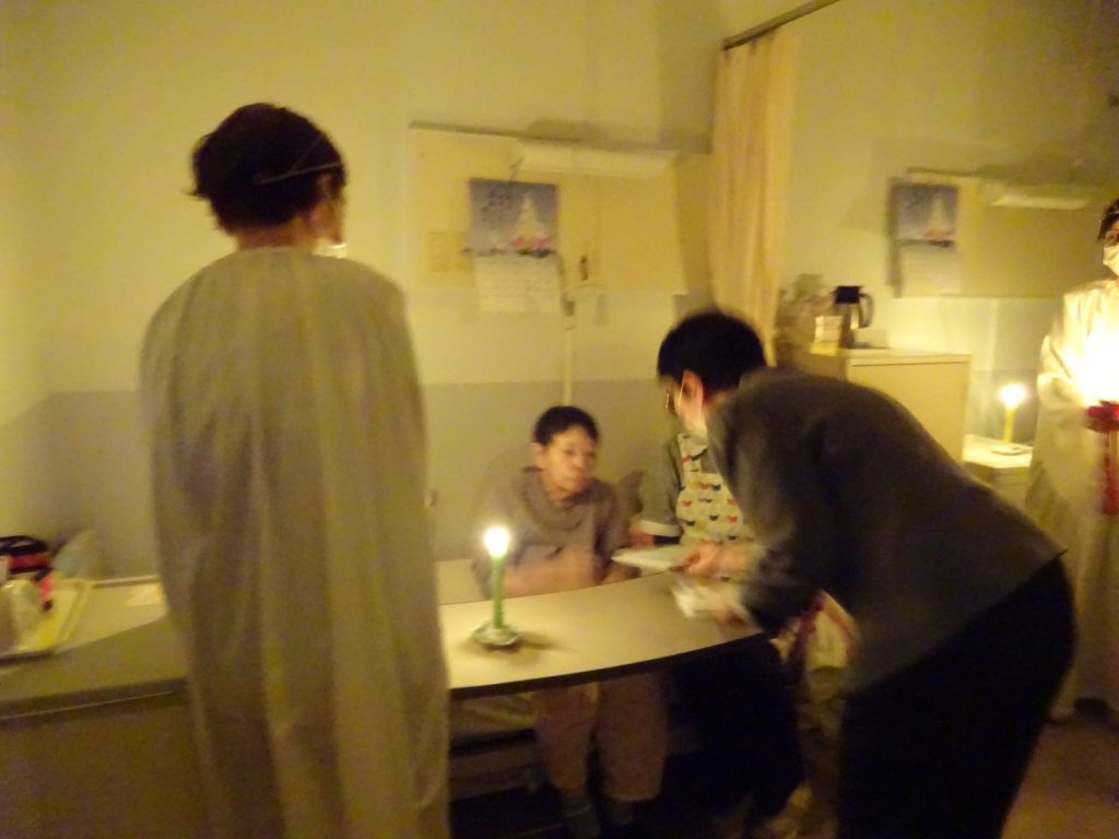 その光は、廊下から居室へ、そしてベッドサイドへと運ばれ、入居者お一人おひとりのもとへ届けられました。