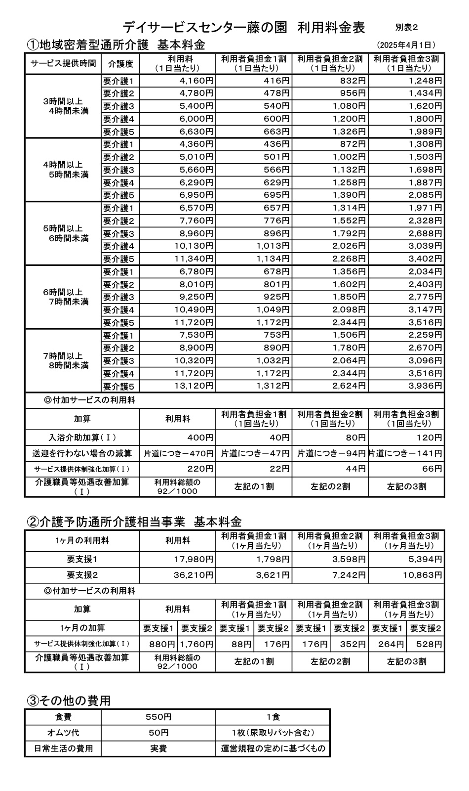 ダウンロードはこちらから【デイサービスセンター藤の園利用料金表】(PDF:61KB)